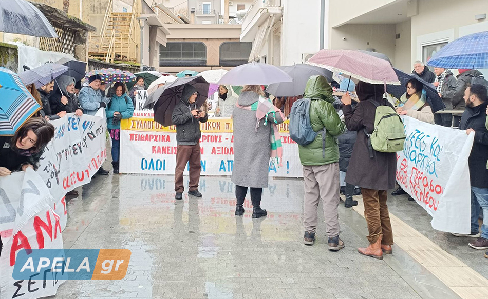 Στο πλευρό των εκπαιδευτικών βρέθηκαν συνάδελφοί τους από τη Λακωνία, την Πελοπόννησο και την Αττική, οι οποίοι πραγματοποίησαν συγκέντρωση συμπαράστασης έξω από την Περιφερειακή Διεύθυνση Εκπαίδευσης, παρά τις δυσμενείς καιρικές συνθήκες.