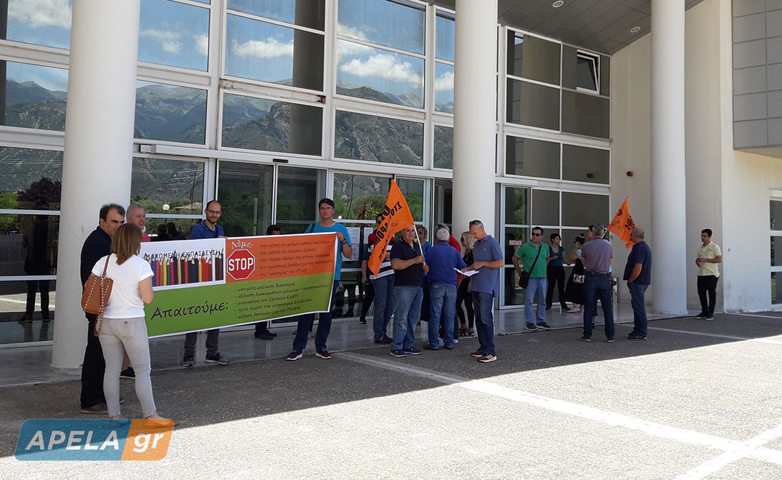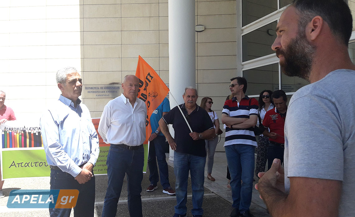 Οι εκπαιδευτικοί παρέδωσαν στους Διευθυντές Α/θμιας και Β/θμιας Εκπαίδευσης Λακωνίας, κ.κ. Πέτρο Νταλιάνη και Γεώργιο Παπαδάκο, αντίστοιχα, κοινό ψήφισμα διαμαρτυρίας όπου αναγράφονταν τα αιτήματά τους.