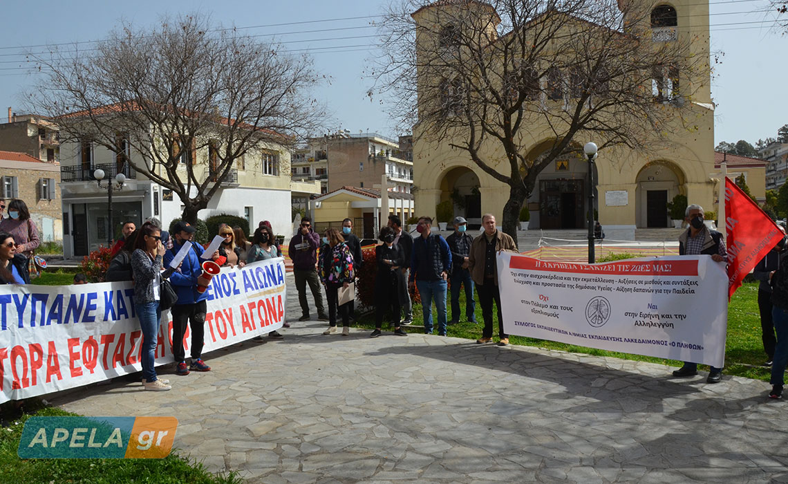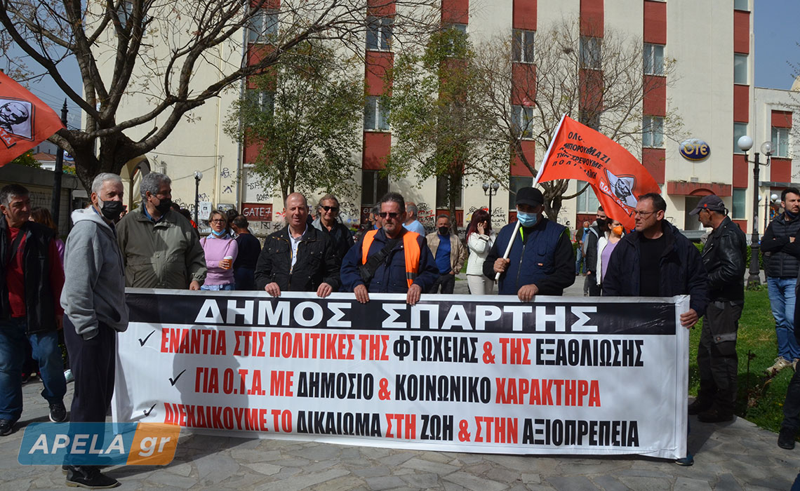 Οι σύλλογοι, τα σωματεία, οι συνομοσπονδίες και οι φορείς που συμμετείχαν στην απεργία, συγκεντρώθηκαν στον προαύλιο χώρο του Εργατικού Κέντρου Λακωνίας και στο πάρκο του ΟΤΕ, όπου έλαβαν χώρα ομιλίες και στη συνέχεια πραγματοποιήθηκε πορεία σε κεντρικούς δρόμους της Σπάρτης.