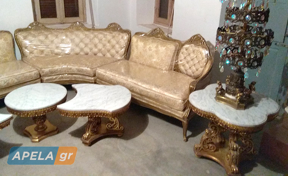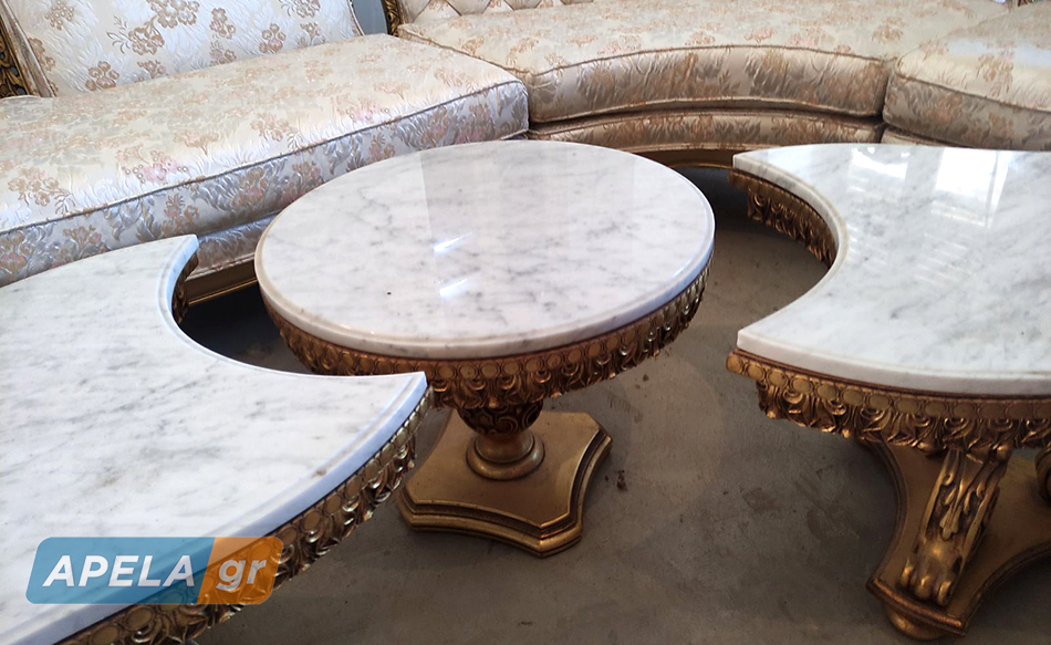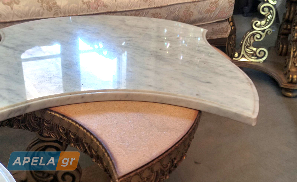 • Τέσσερα τραπέζια σαλονιού με μασίφ μάρμαρο και σκαλιστή βάση