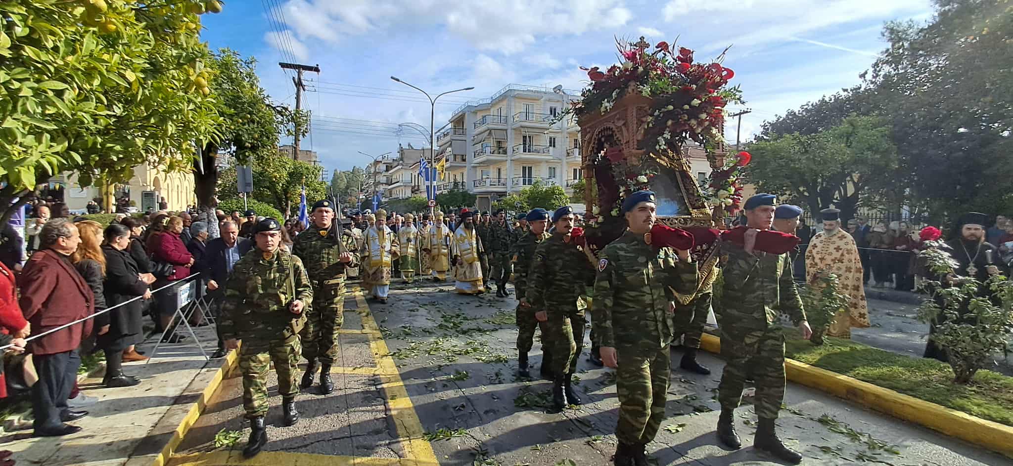 Ακολούθησε λιτάνευση της ιερής εικόνας του Οσίου Νίκωνα στους δρόμους της πόλης, υπό τους ήχους της Φιλαρμονικής του Δήμου και με τη συμμετοχή στρατιωτικού αγήματος. Πλήθος κόσμου πλαισίωσε την πομπή, αποδίδοντας τιμή στον Άγιο και ενισχύοντας την πνευματική διάσταση της ημέρας.